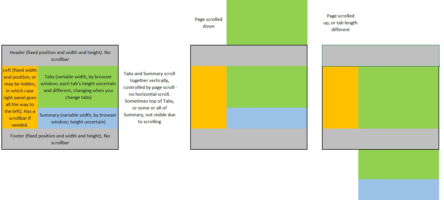 javascript layout fixed header footer fixed width sidebar