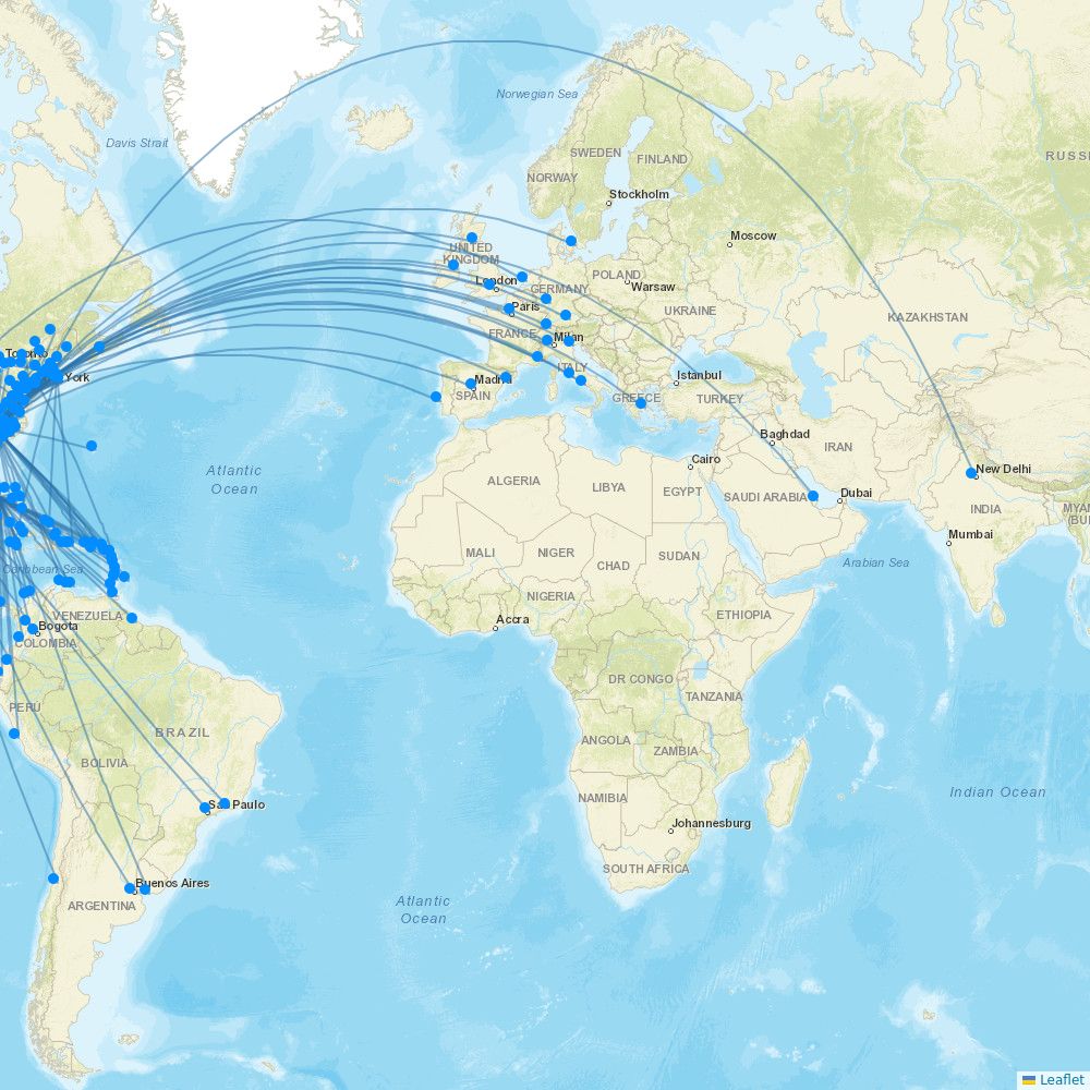 world map showing airline flight routes compare jet