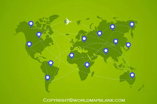 plane flying world map leaving trail route points