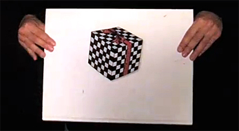 floating cube optical illusion effect shadow play visual paradox