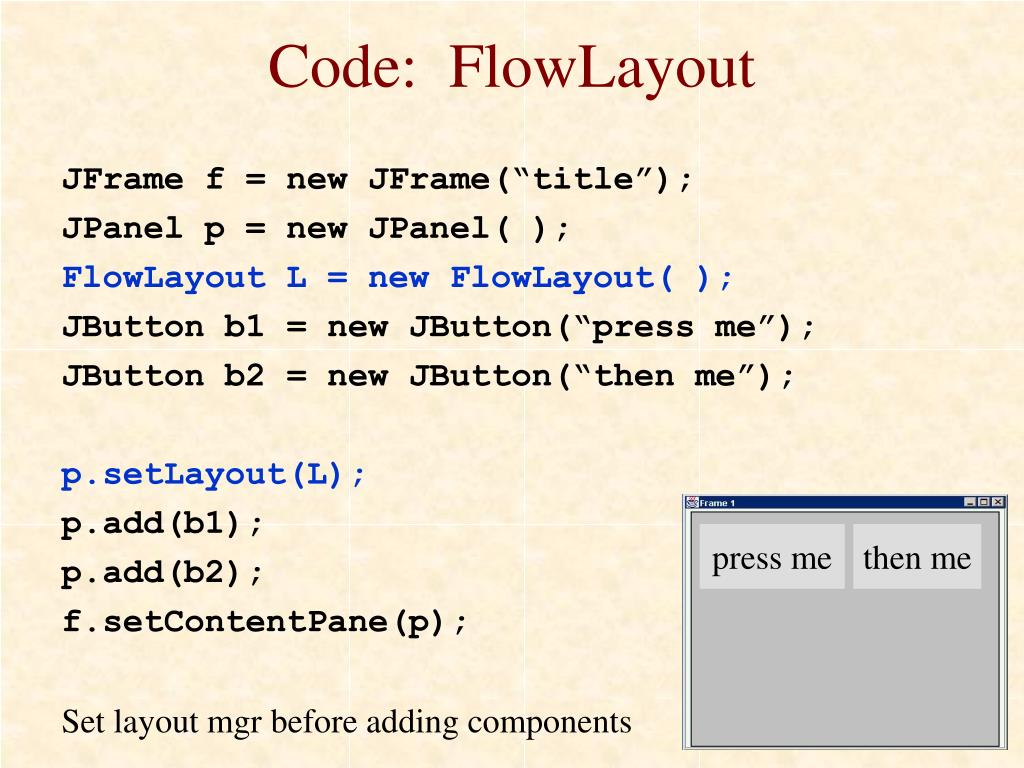 Tidak hanya Flowlayout, anda juga bisa melihat gambar lain seperti Java Swing, Java AWT, Java Parameters, How Use, Java Structure, Grid Layout Java, Java Applet, Java Example, What is, Panel Icon Visual Basic, Java, Android, Java Diagram, Example, C# ComboBox, Android Kotlin, Java Purpose, J-Sava, Grid Layout, Android Studio, Alternative Layouts, Grid Layout vs, and BorderLayout vs.