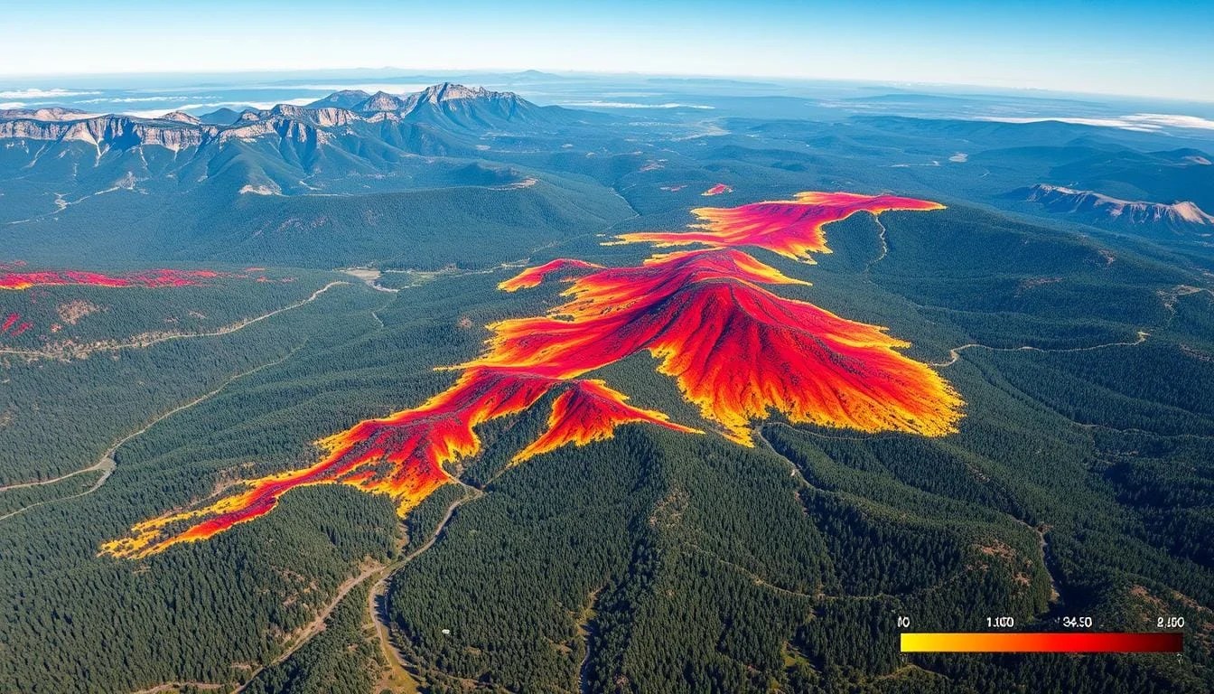 heatmap forest fires spread intense reds oranges