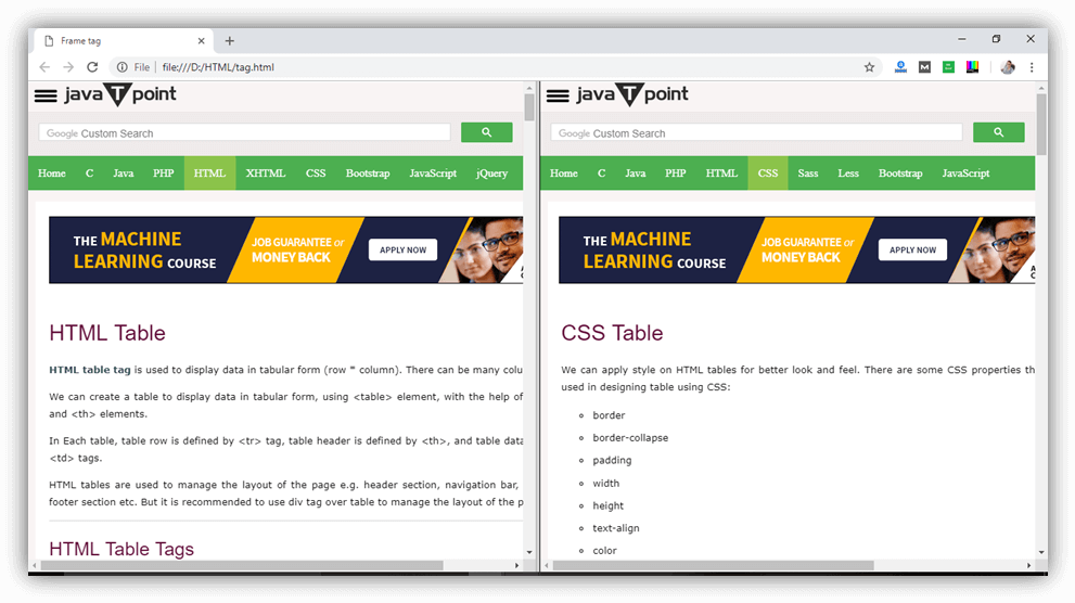 Berbagai Contoh Frameset