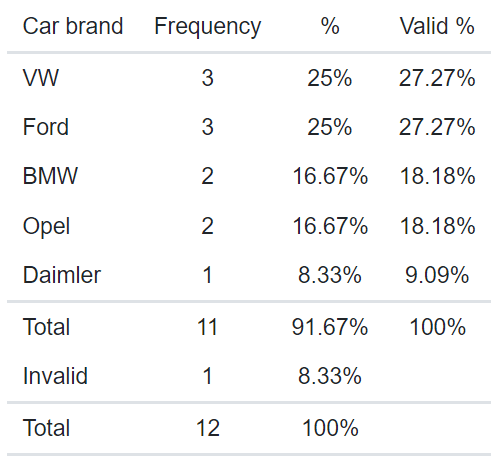 Berbagai Contoh Frequency Table