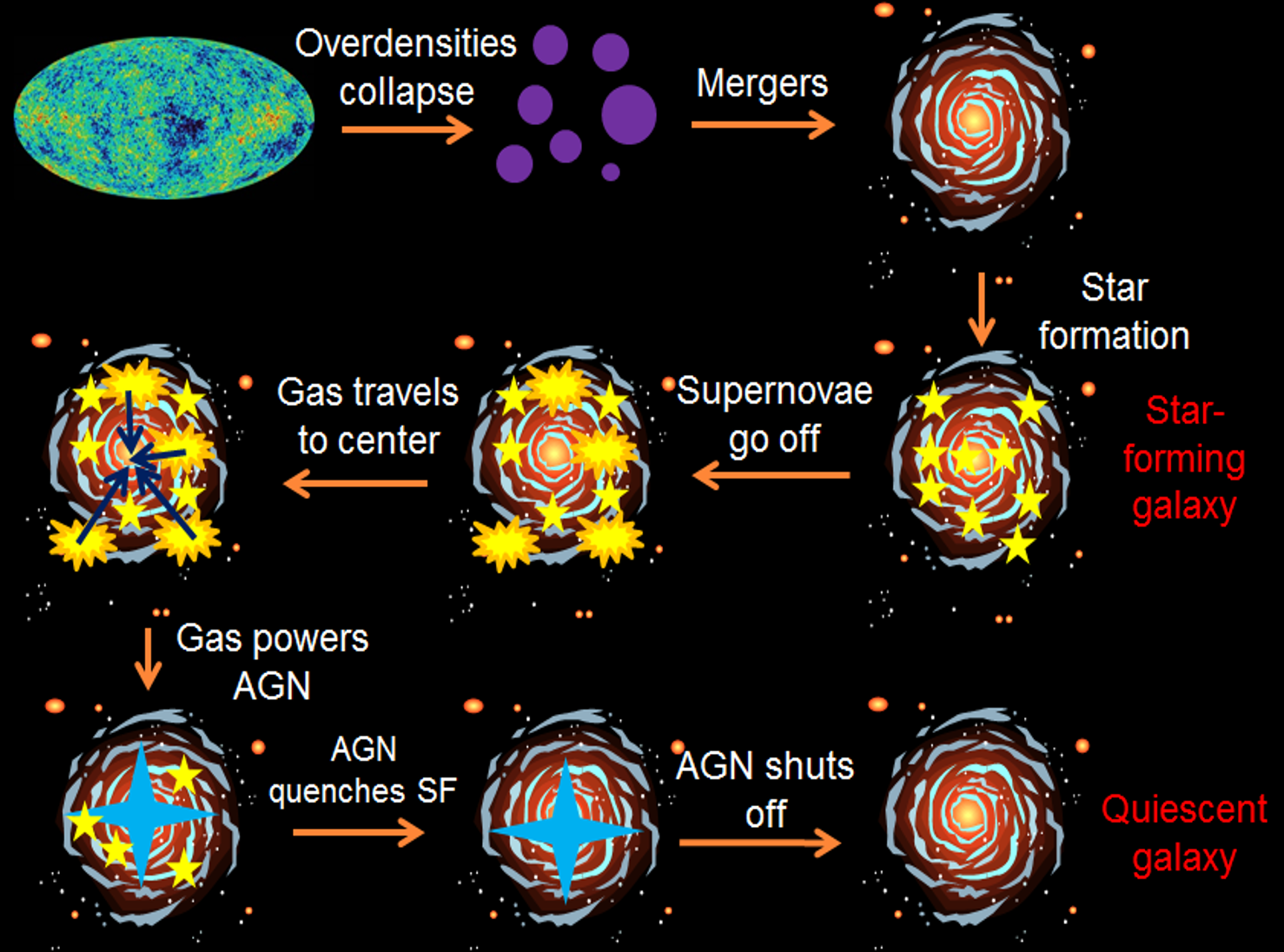 drawing depicting scenarios galaxy evolution main
