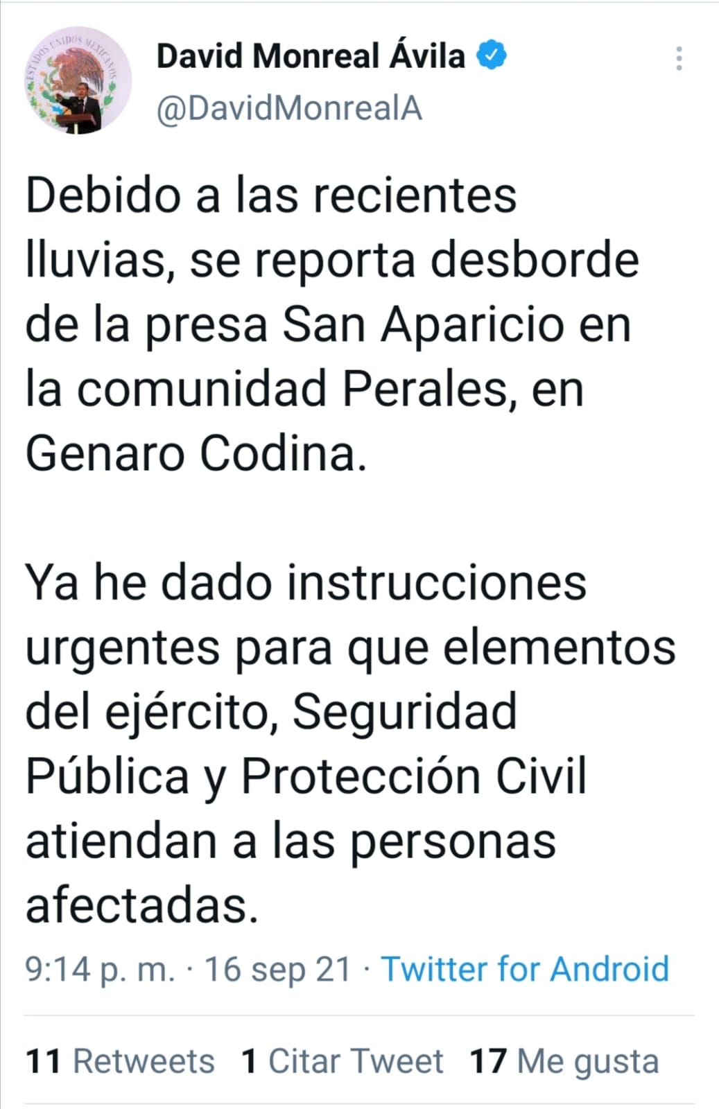 se desborda presa en genaro codina pm periometro
