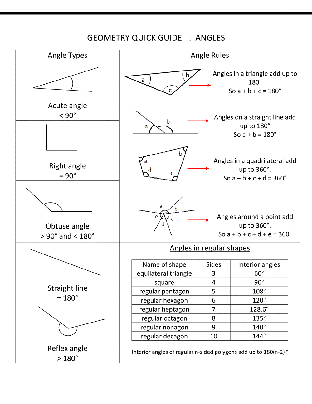 Berbagai Contoh Geometry Angles Chart