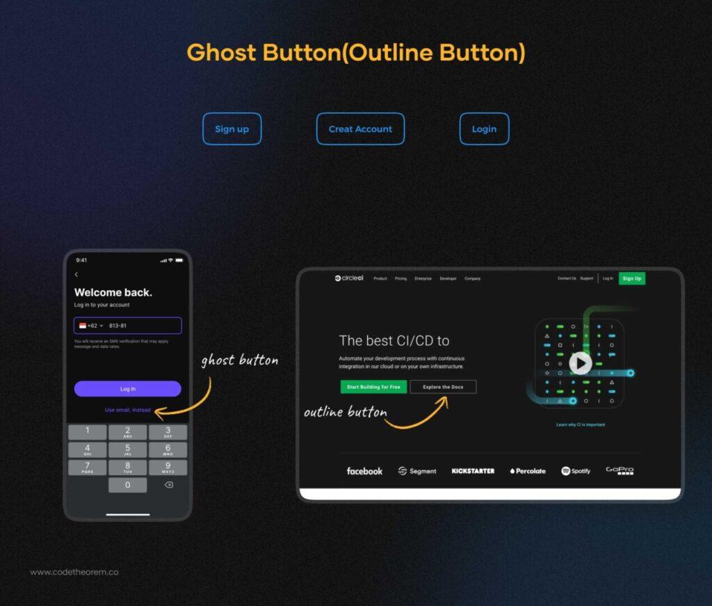 Berbagai Contoh Ghost Button Ui