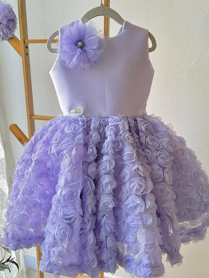 lovely purple flowers girls formal party dress sleeveless tb