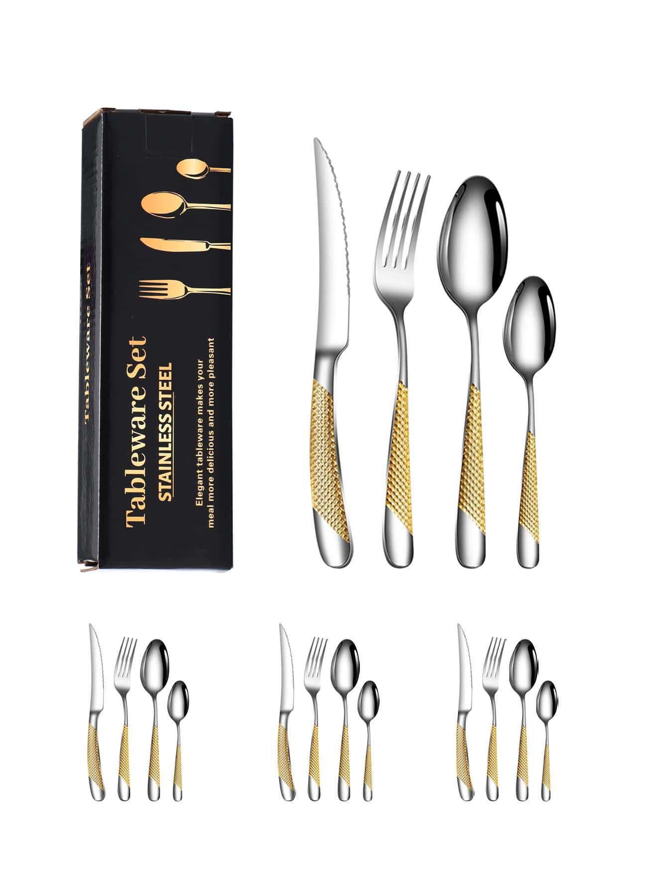 Tidak hanya Gold Flatware, anda juga bisa melihat gambar lain seperti Stainless Steel, For Wedding, Dark-Gray, Eagle Head, Table Setting, Round Spoon, Golden Casino, European Style, Plated, and Set for 12.