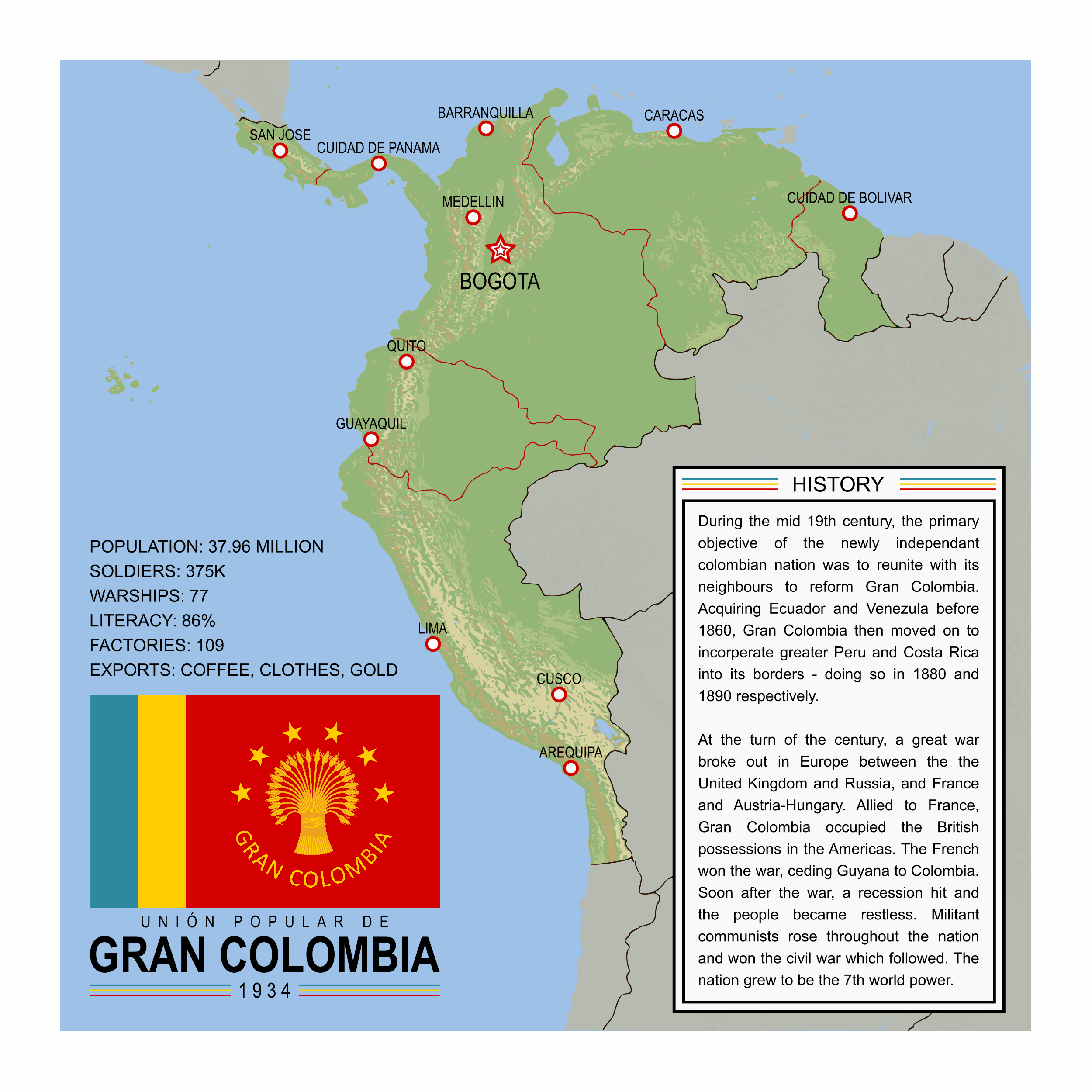 Tidak hanya Gran Colombia, anda juga bisa melihat gambar lain seperti Modern Map, Dibujo De La, General Hat, Civ 6, Geographic Map, Fascist Emblem, Simon Bolivar, Coat Arms, World Map, Road Map, and Gold Mine.