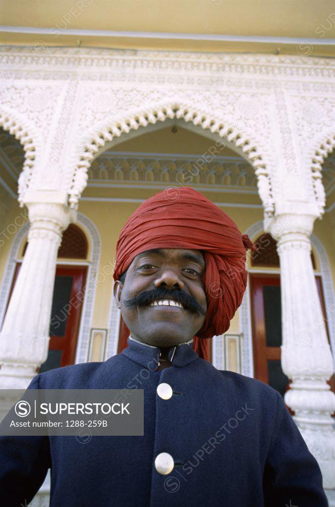 portrait security guard standing front city palace