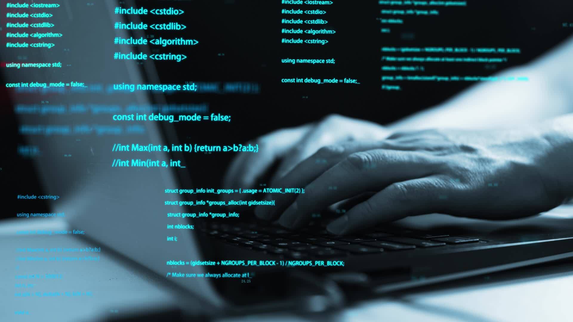 experienced hacker writing lines code stock footage sbv