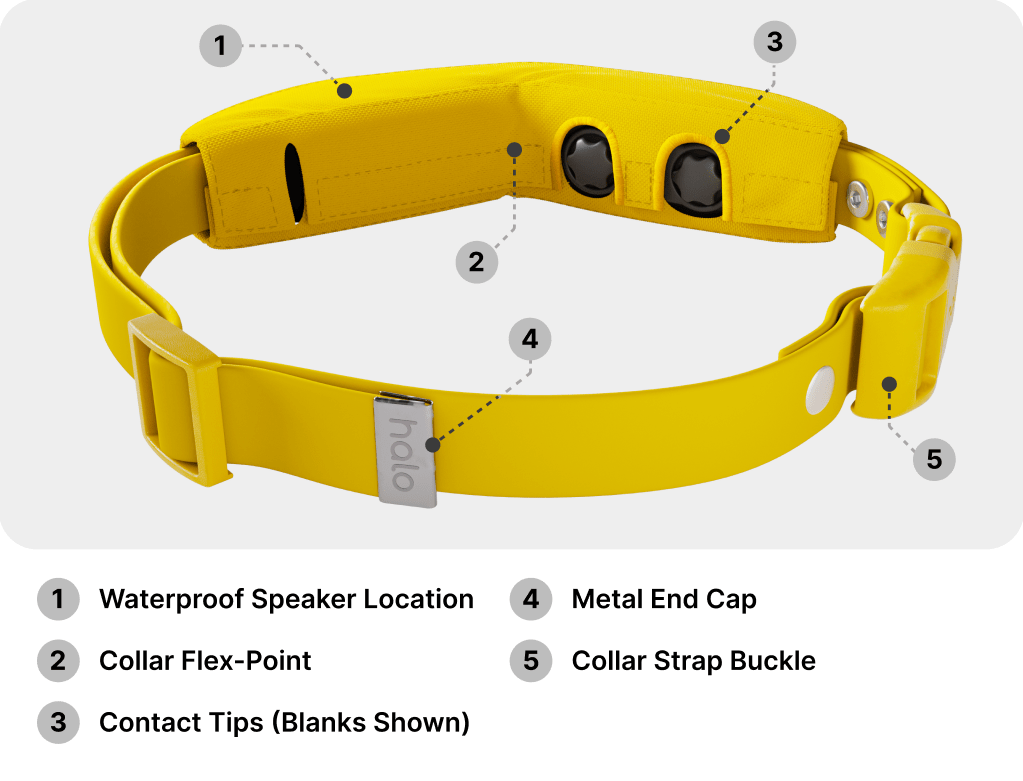 Tidak hanya Halo Collar, anda juga bisa melihat gambar lain seperti Magnetic Charger, Rubber Plug, Car Seat, Light-Up Dog, Size Chart, Repair Kit, Charging Port, Yellow Color, Dog Owner, Charging Port Cover, Chocolate Lab, and 1 Dog.