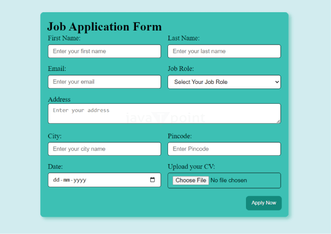 job application form html css javascript kajal sharma