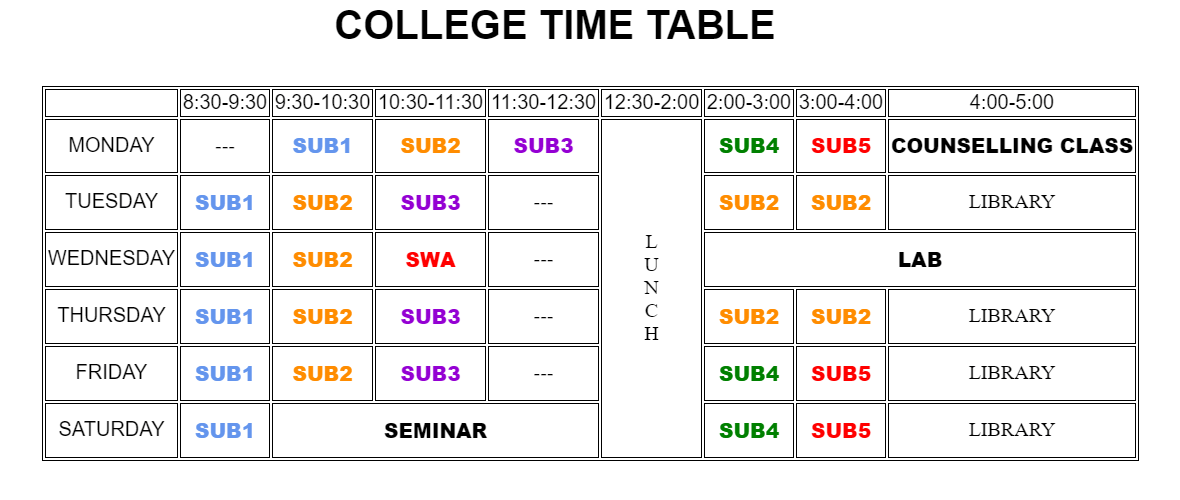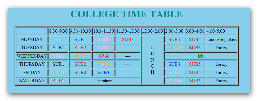 Berbagai Contoh Htmltime Table