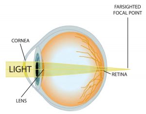 hyperopic refractive error light rays focusing retina surface