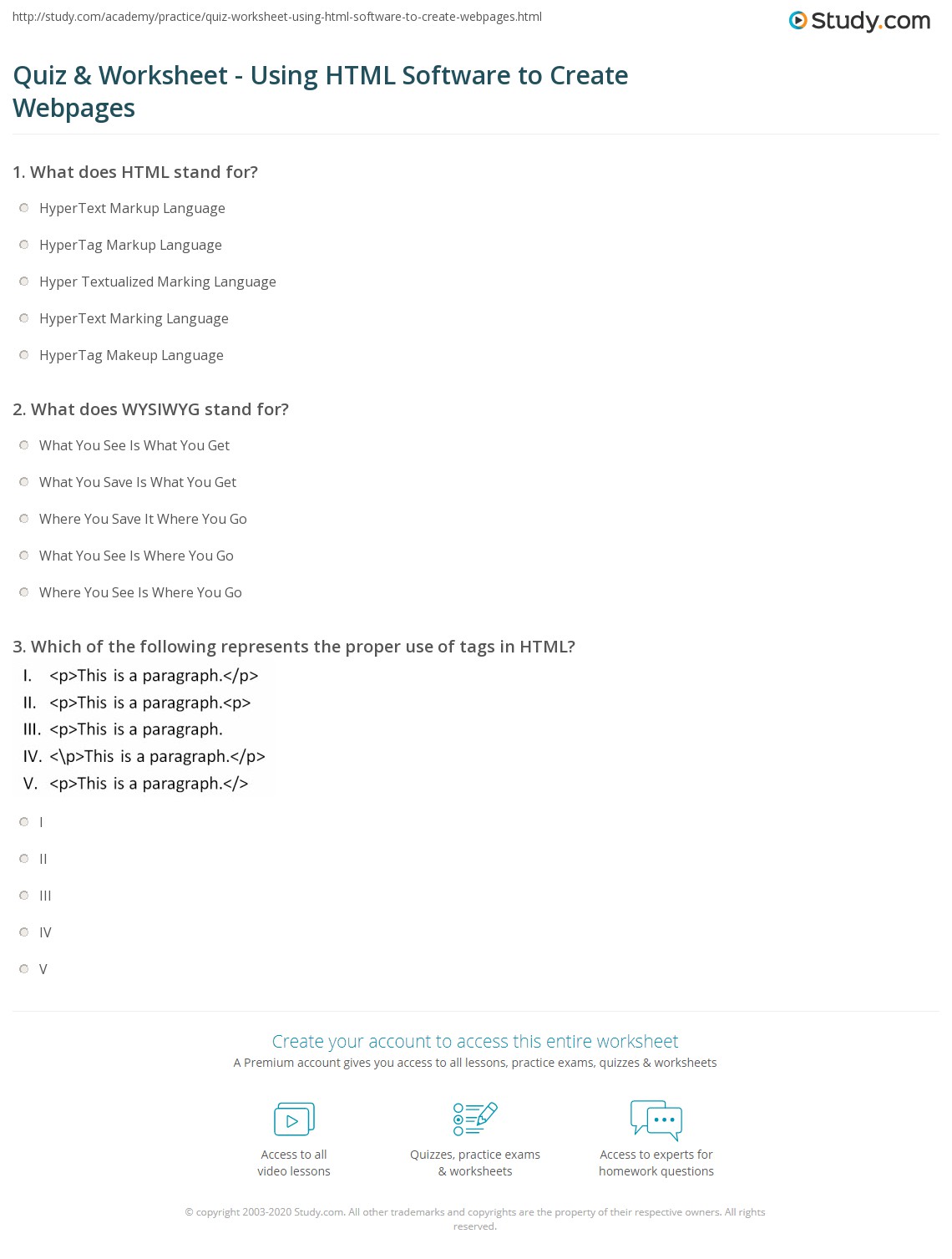 quiz worksheet html software create webpages studycom