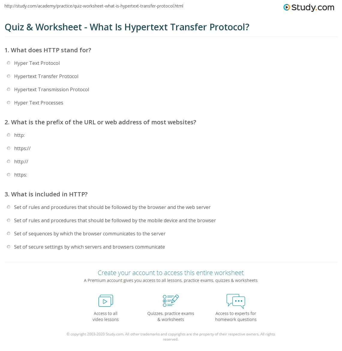quiz worksheet hypertext transfer protocol studycom