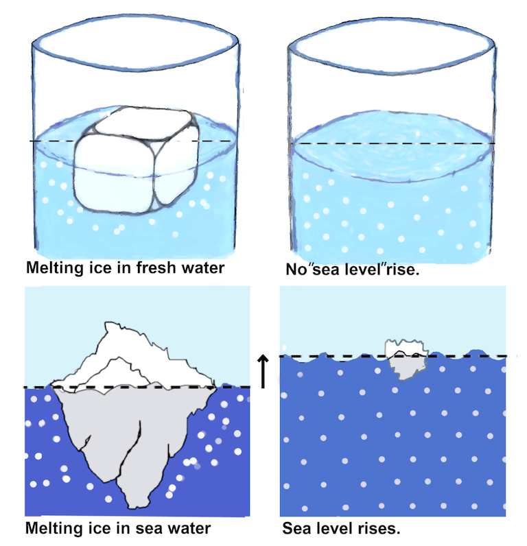 melting ocean ice affects sea level ice cubes glass