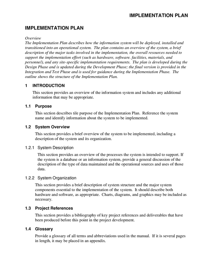 Berbagai Contoh Implementation Plan Sample