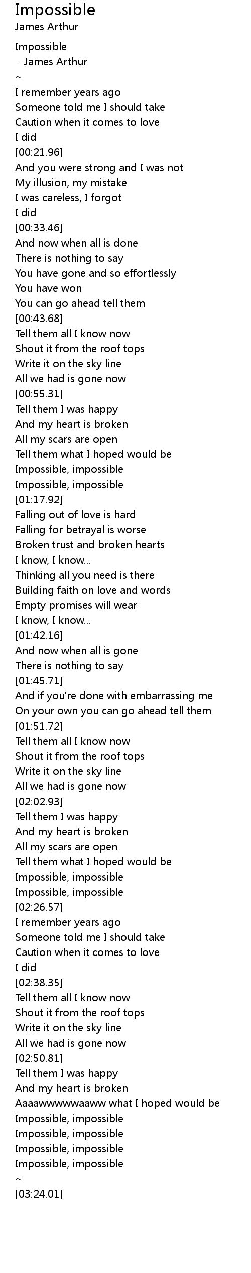 Berbagai Contoh Impossible Lyrics