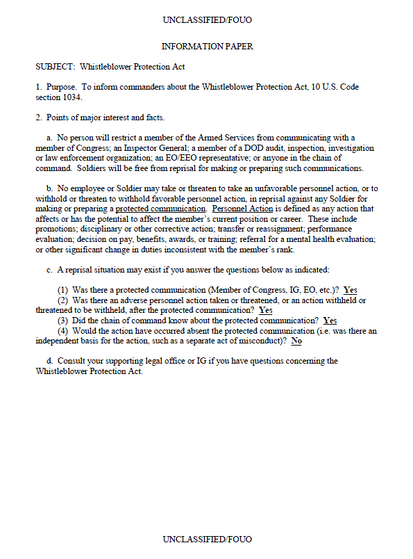 ufouo dod military whistleblower protection act information paper