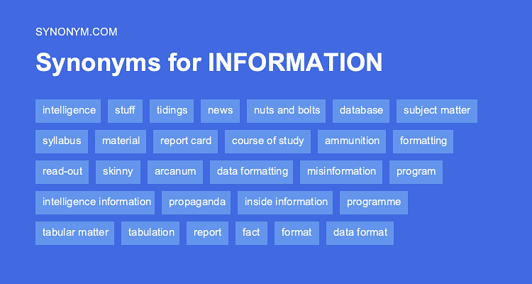 Jika kamu sedang mencari Information Synonym, maka anda berada di halaman yang tepat. Kami menyediakan aneka Information Synonym yang bisa anda pesan online. Silakan hubungi kami via +6282245078486, jangan lupa sertakan juka gambar yang diinginkan.