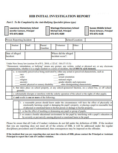 initial investigation report examples format examples