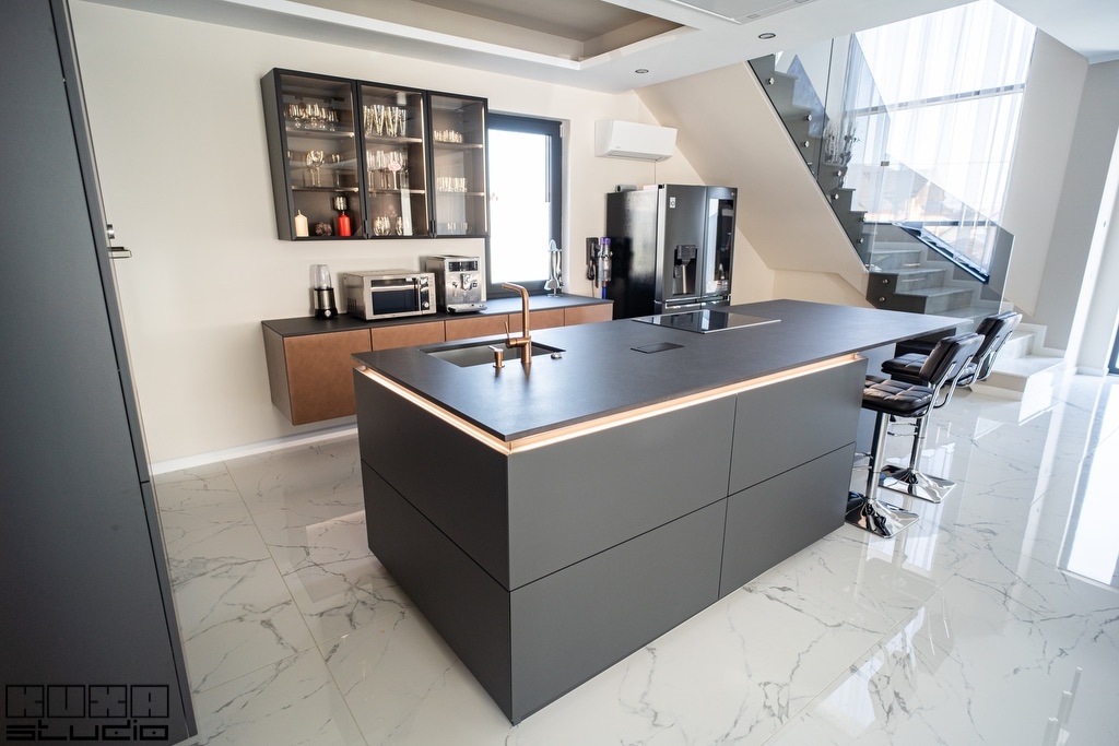 mobila moderna de bucatarie cu insula dej kuxa expert bucatarii