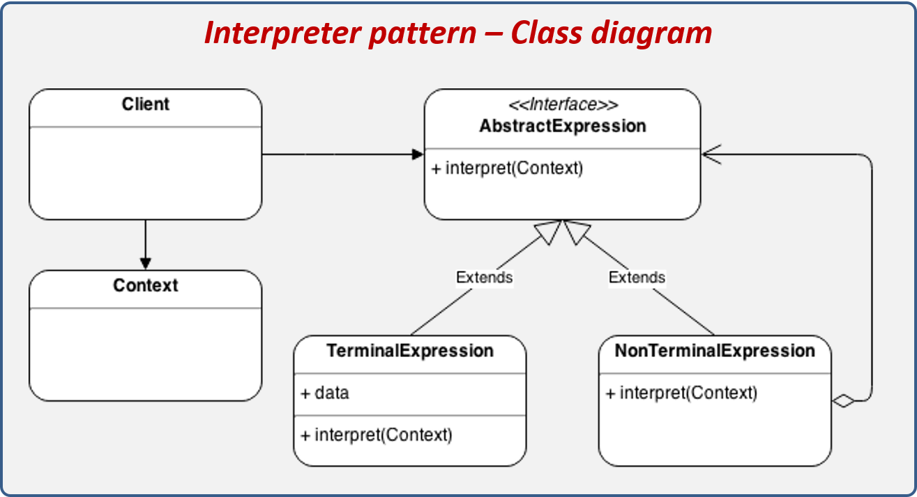 Tidak hanya Interpreter Pattern, anda juga bisa melihat gambar lain seperti UML Diagram, Design, Class Diagram, C# Diagram, Diagramme De Classe Du, Adapter Pattern, Strategy Pattern, Composite Pattern, Observer Pattern, Decorator Pattern, State Pattern, Command Pattern, Iterator Pattern, Singleton Pattern, Proxy Pattern, Bridge Pattern, and Flyweight Pattern.