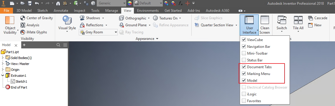 autodesk inventor user interface extensions diagram quizlet