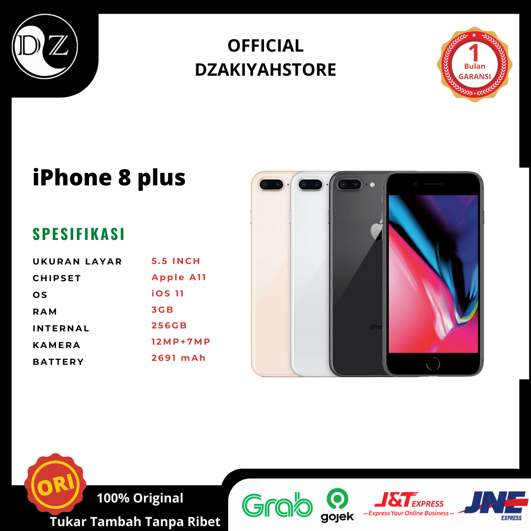 Kami mengirim paket Iphone 8 Plus melalui berbagai ekspedisi, misalnya JNE, JNT, POS, dll. Kami juga menerima pembayaran via BCA/Mandiri/dll. Pengiriman biasanya tidak sampai seminggu sudah sampai dan kami sertakan pula nomor resi yang bisa digunakan untuk tracking barang secara online.