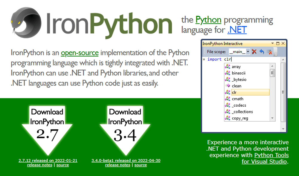 Tidak hanya Ironpython, anda juga bisa melihat gambar lain seperti Boo, Ruby, Cobra, PyPy, Jython, Mono, Microsoft XNA, ASP.NET, Visual FoxPro, Visual Basic .NET, XAML, and ATLAS.
