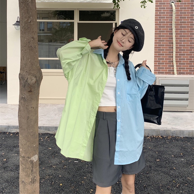 jual yuruma atasan jahitan kemeja setengah panjang longgar gaya korea