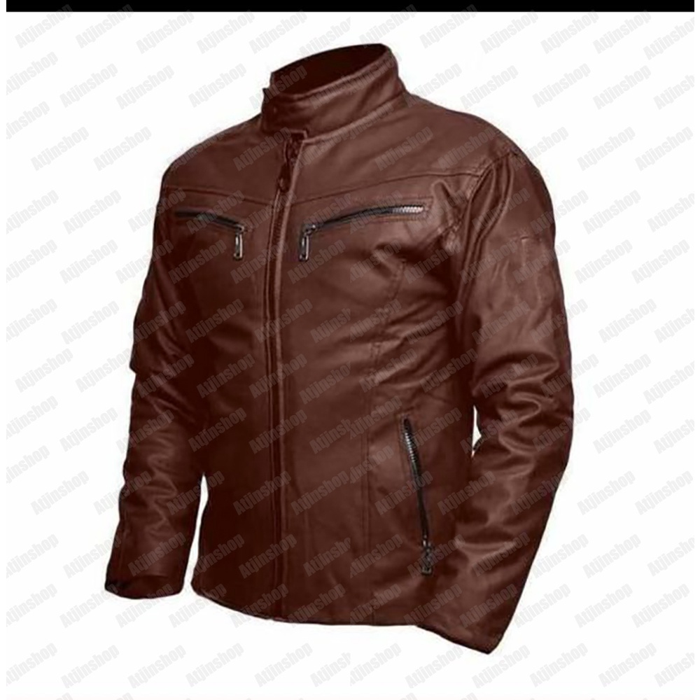 jual ready size jumbo jaket kulit motor pria anti air angin model