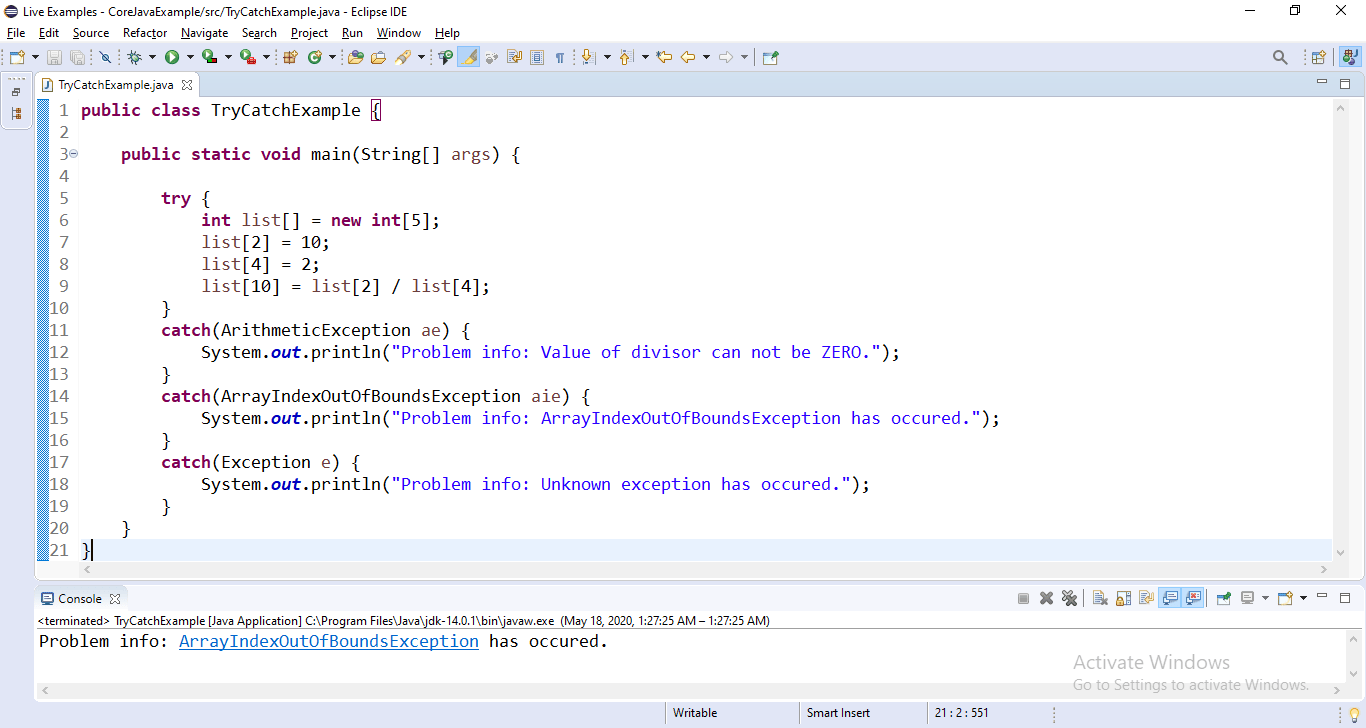 Berbagai Contoh Java Catch