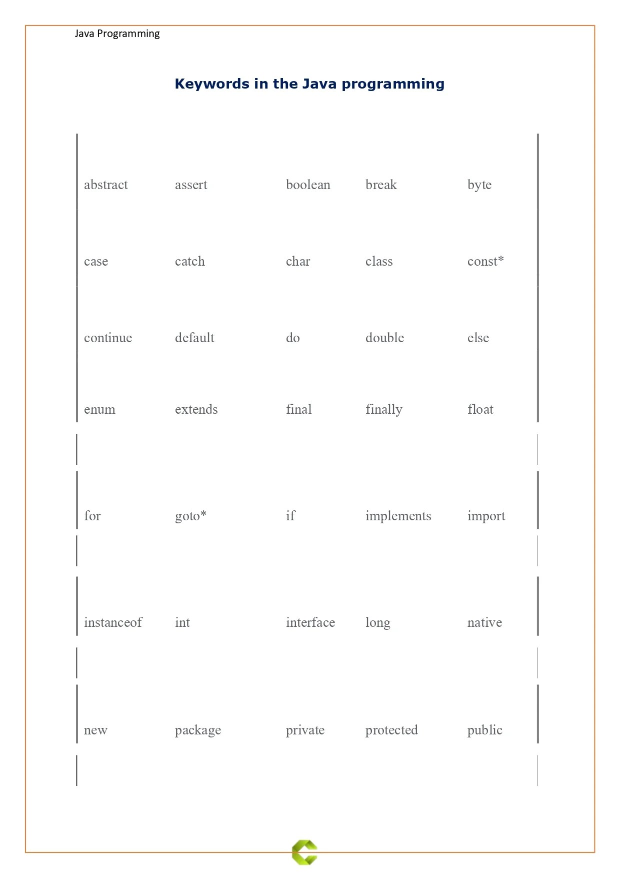 Jika kamu sedang mencari Java Keywords, maka anda berada di halaman yang tepat. Kami menyediakan aneka Java Keywords yang bisa anda pesan online. Silakan hubungi kami via +6282245078486, jangan lupa sertakan juka gambar yang diinginkan.