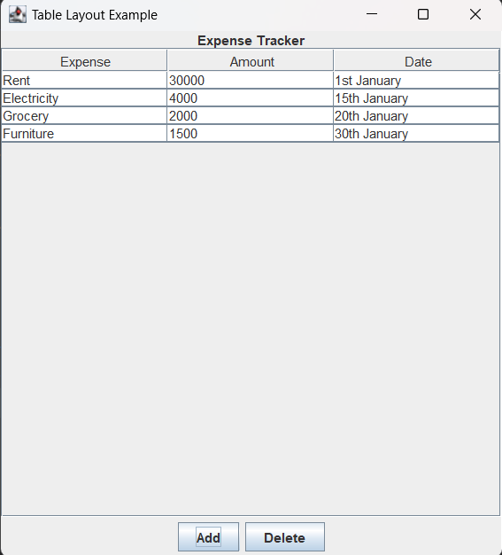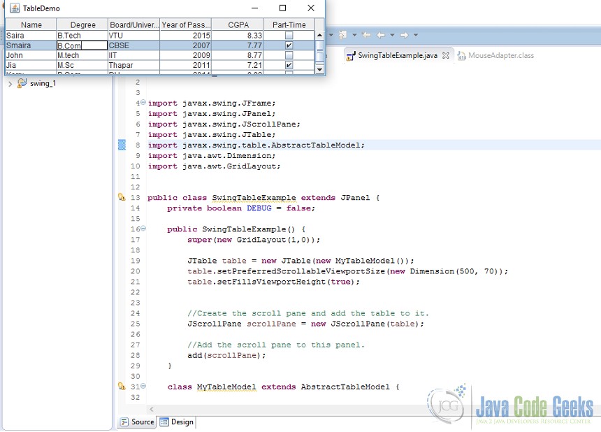 Berbagai Contoh Java Output Table
