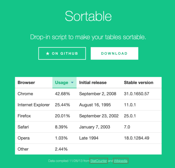 minimalist jquery table sort plugin tablesort jquery plugins