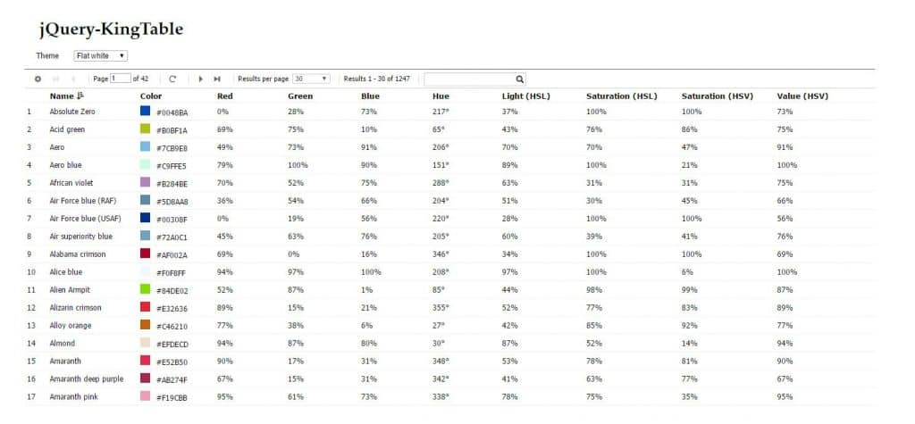 lightweight dynamic data table plugin jquery datatablejs