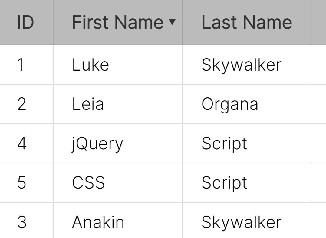 paginate filter sort dynamic data table table sortable