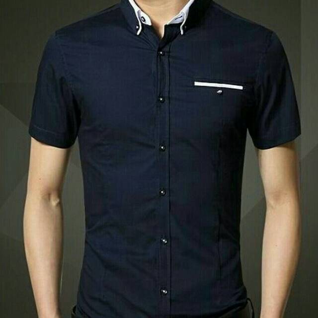 jual sc kemeja rian navy kemeja cowok keren shopee indonesia