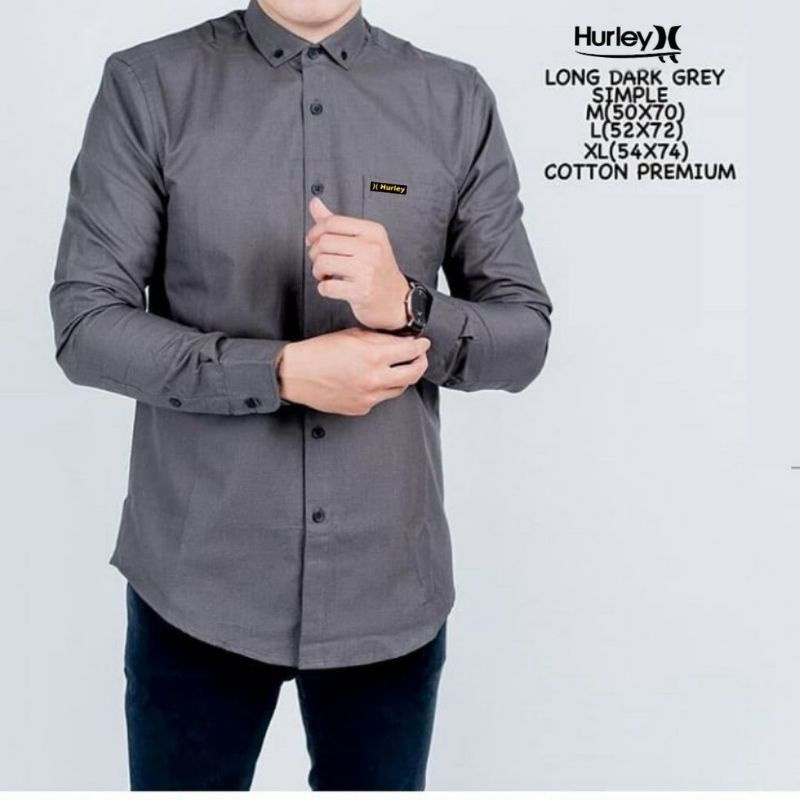 jual baju kemeja pria lengan panjang polos abu abu navy hitam marun
