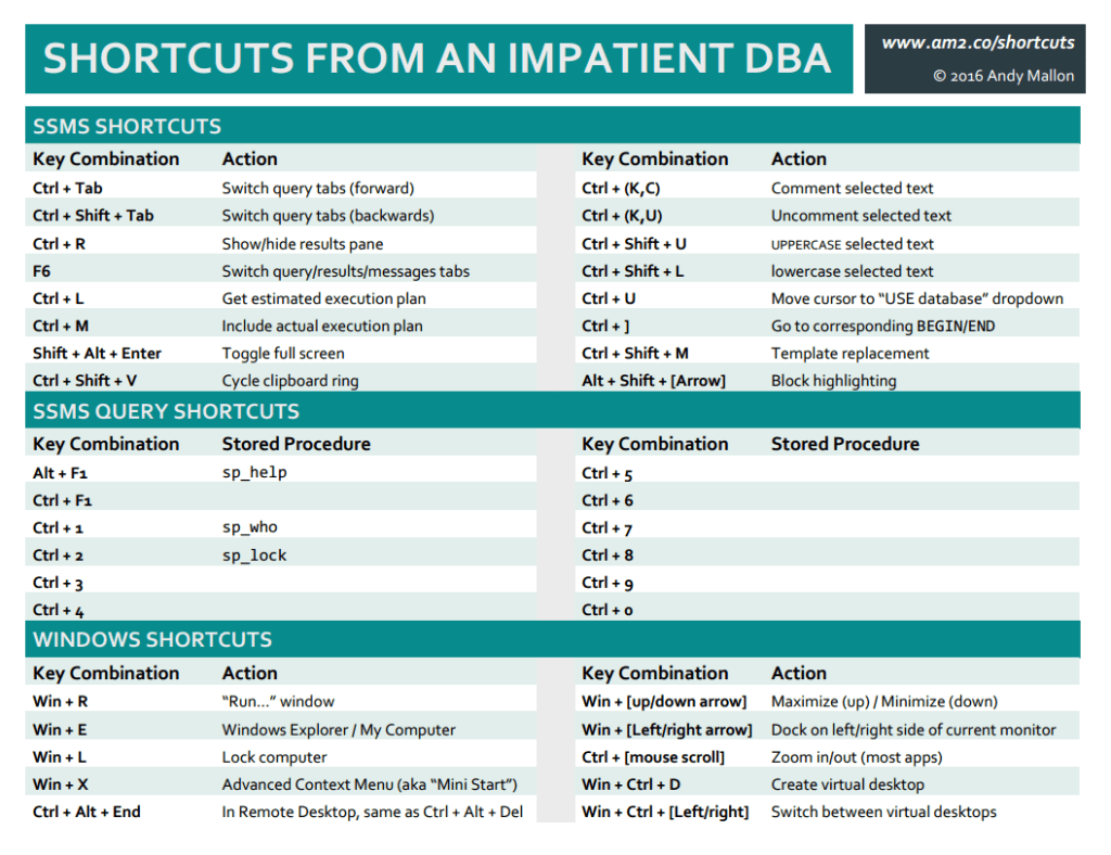 shortcuts cheat sheet ssms windows andy mallon