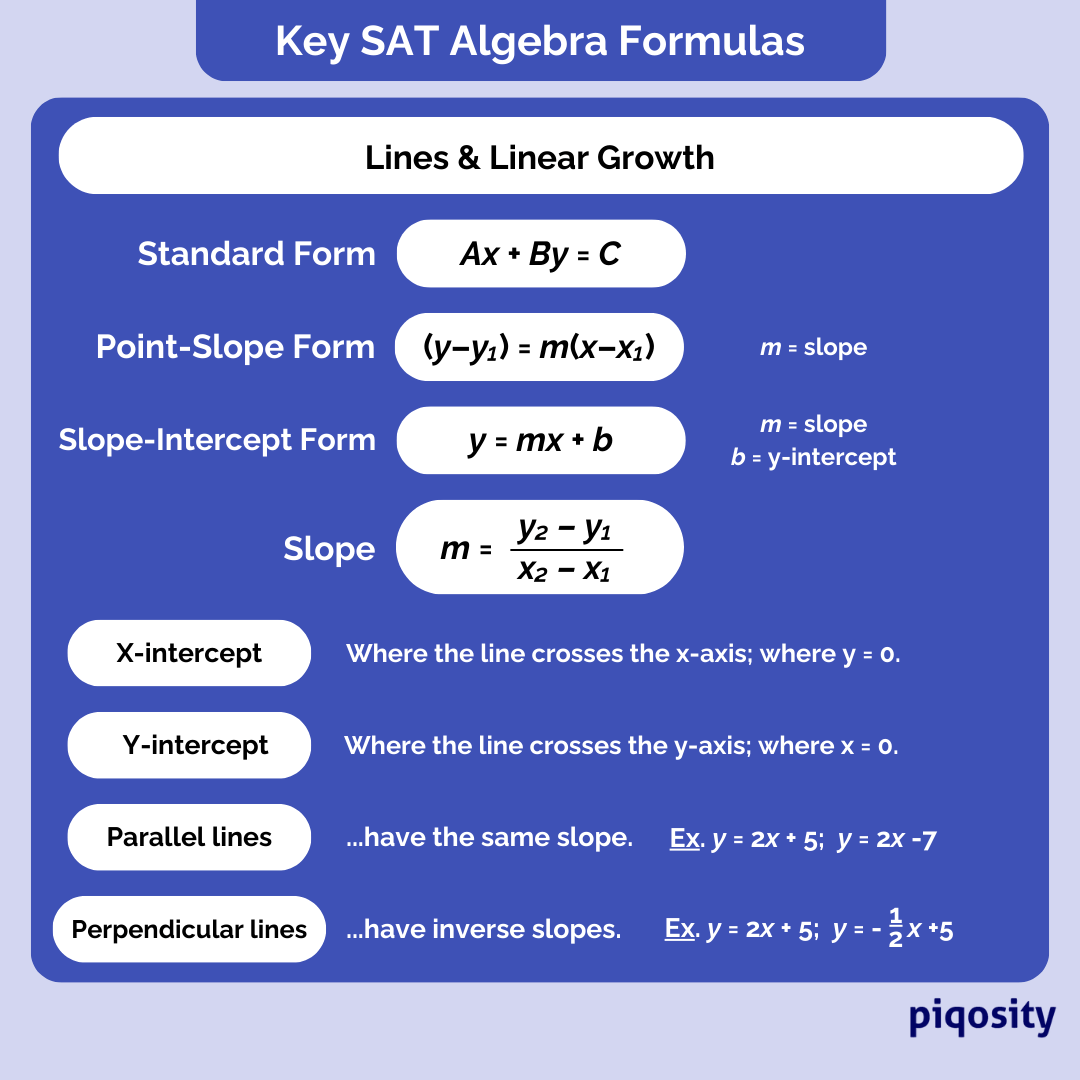 key sat math algebra formulas piqosity adaptive learning student