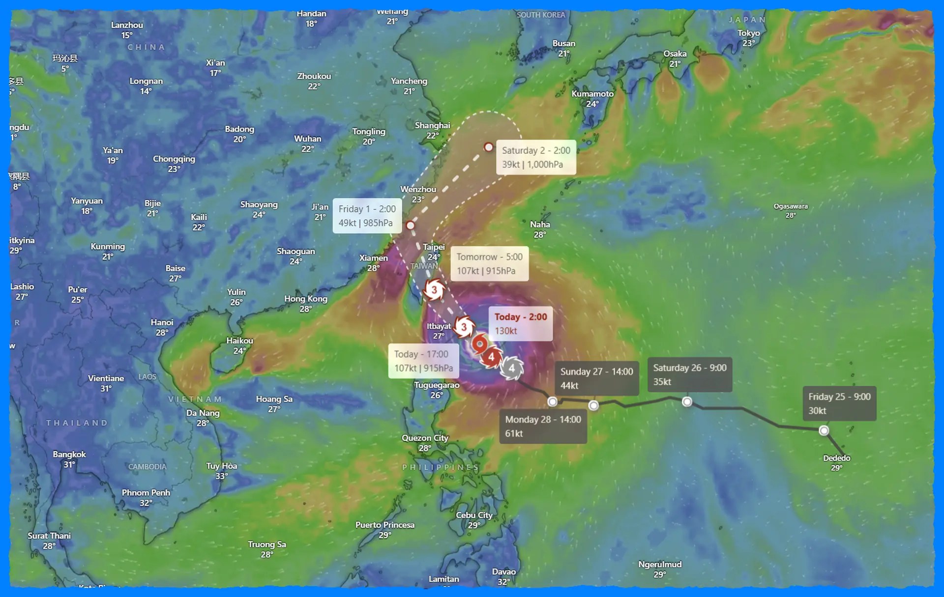 pogodnik typhoon kong rey intensifies threat taiwan