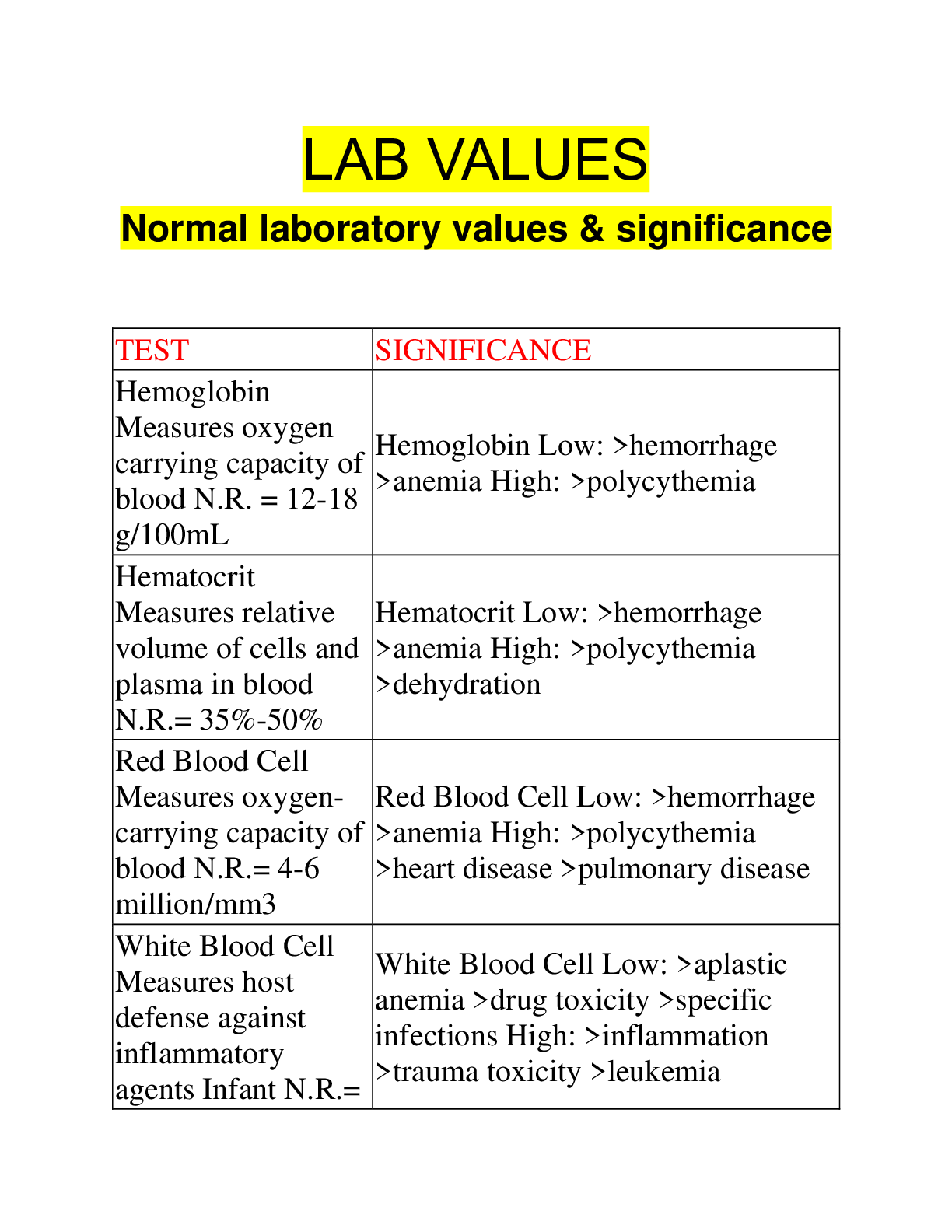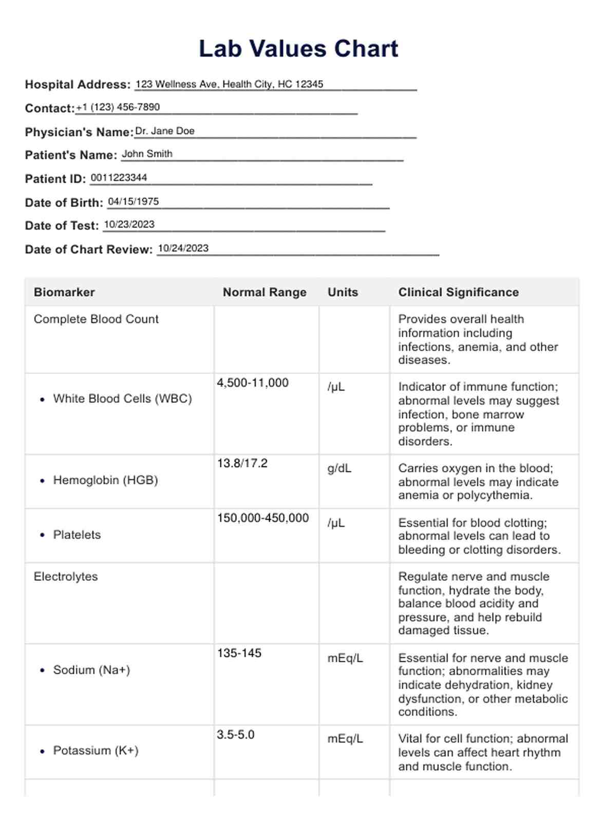 Berbagai Contoh Lab Values Chart
