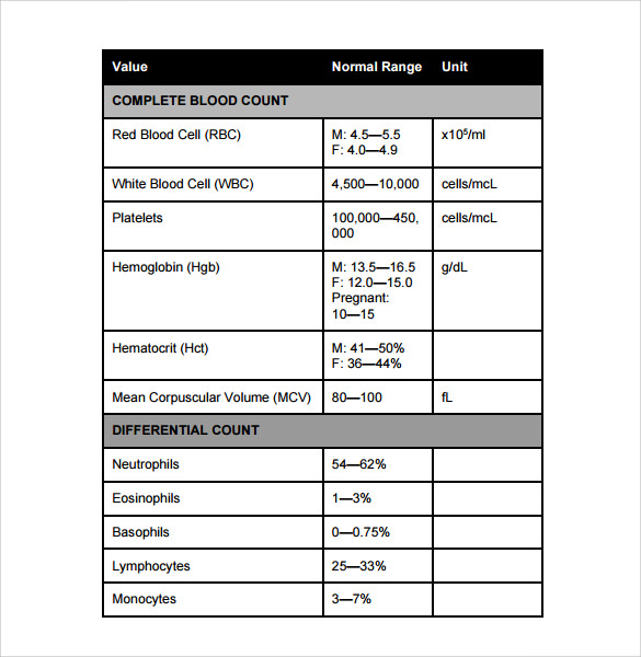 normal lab values chart template speedy template