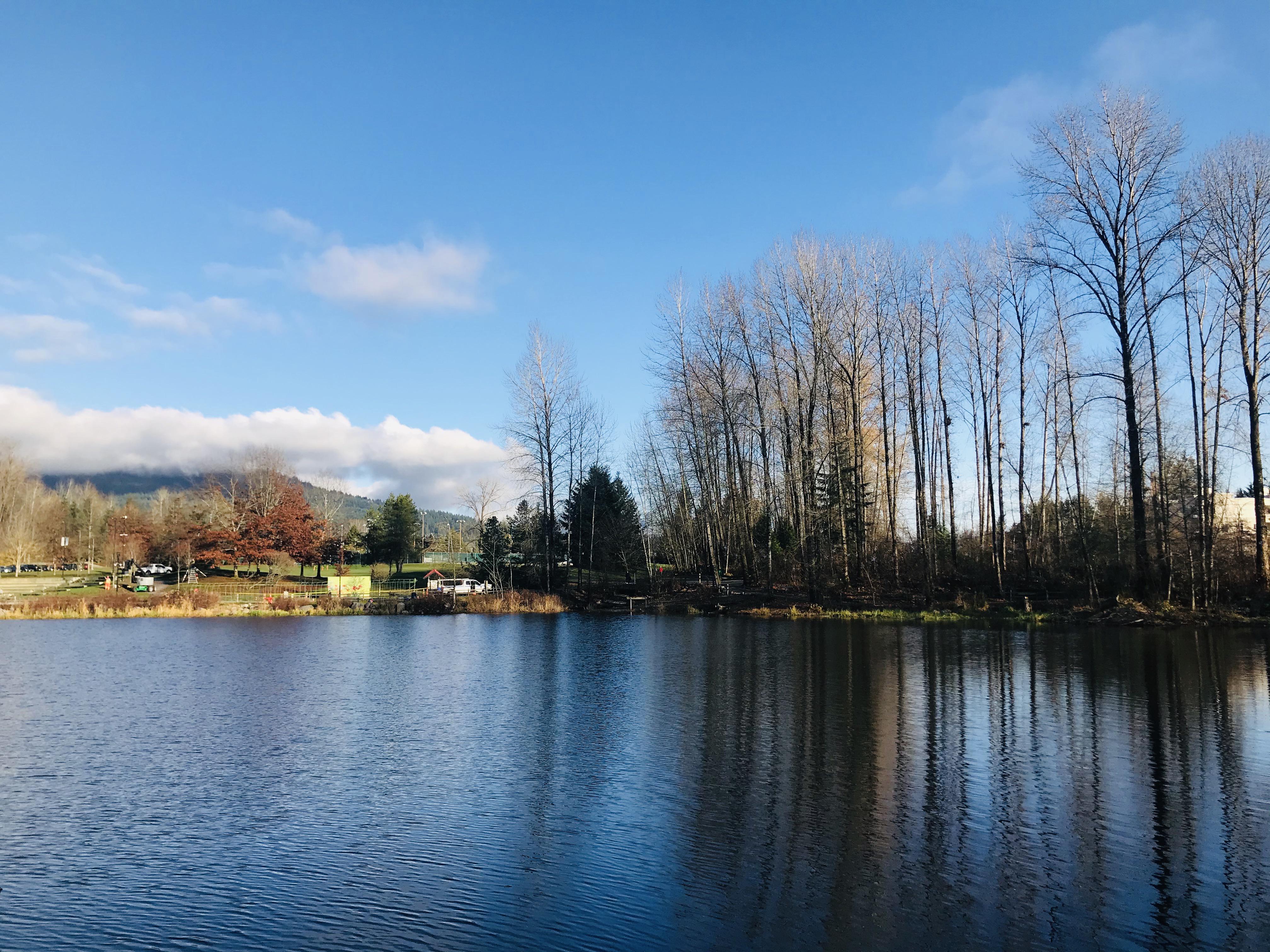 coquitlam town center park lafarge lake stock photo